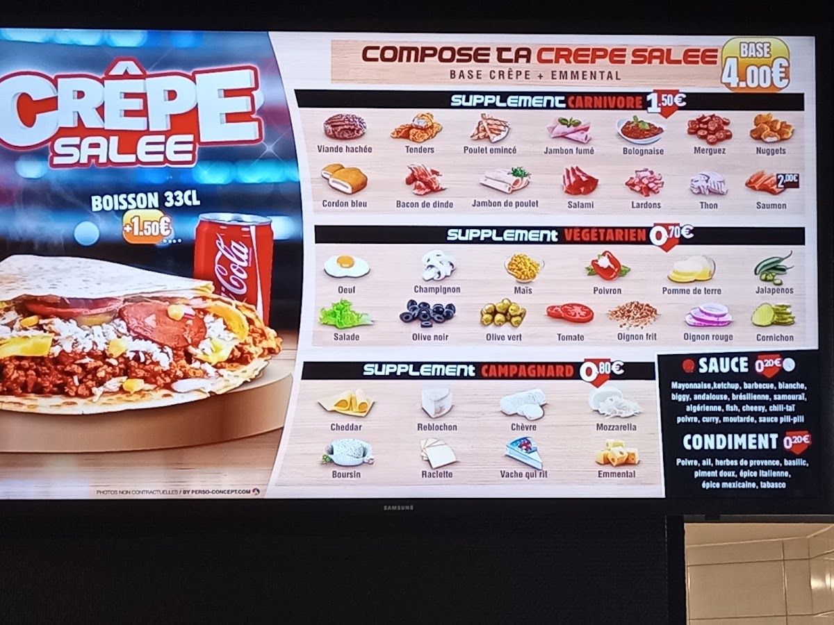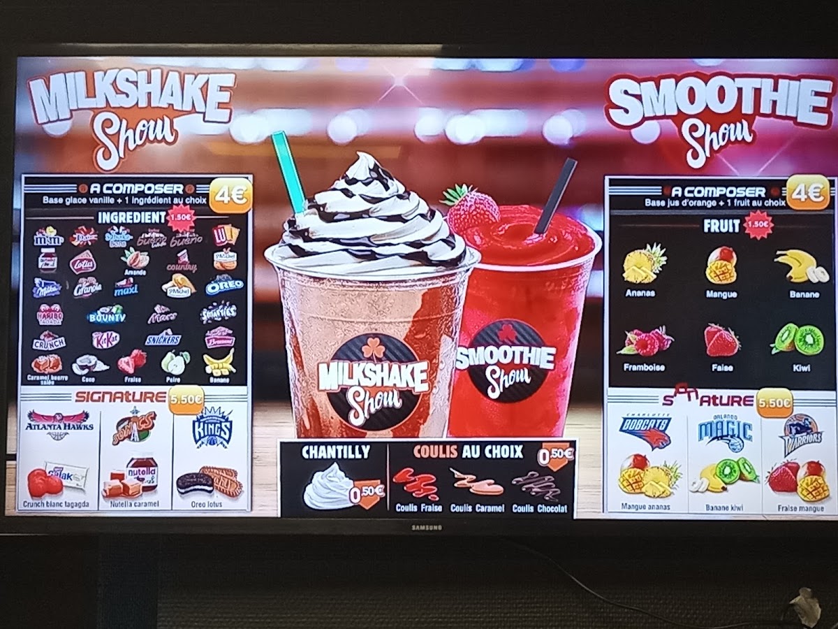 Show Crêpe in Troyes offers a delightful selection of sweet and savory options that cater to all tastes. The menu shines with its unique crêpes and waffles, each offering a twist on traditional favorites. For those with a sweet tooth, the Bubble Waffles stand out as a crowd favorite, with their crispy yet chewy texture, often paired with a variety of toppings and sauces. Another standout is the Gaufre Banane Buéno, a perfect fusion of bananas and the beloved chocolate spread, creating an irresistible combination. For a refreshing treat, the Smoothie Fraise offers a vibrant and fruity experience, made from fresh strawberries, ideal for a lighter, refreshing option. The menu also features a range of savory crêpes, including classic options like ham and cheese, providing balance to the indulgent sweet offerings. Show Crêpe is the perfect spot for those looking to enjoy both innovative desserts and satisfying savory dishes.